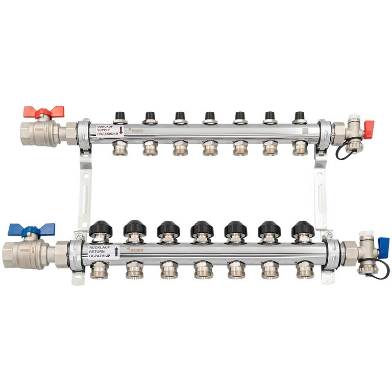 Комплект коллекторов РЕХАУ HKV из нержавеющей стали на 7 контуров, с шаровыми кранами